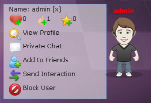 Interacting - Move your mouse over other users avatars and click the left mouse button to interact with them.
